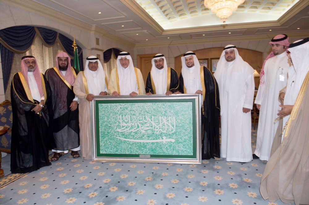 كما تسلم سموه من مدير جامعة أم القرى الدكتور بكري عساس، في ديوان الإمارة بالعاصمة المقدسة اليوم (الإثنين)، لوحة براية الخفاق الأخضر، شكلتها بصمات الطلاب والطالبات خلال ملتقى المستجدين 1437/1438هـ.