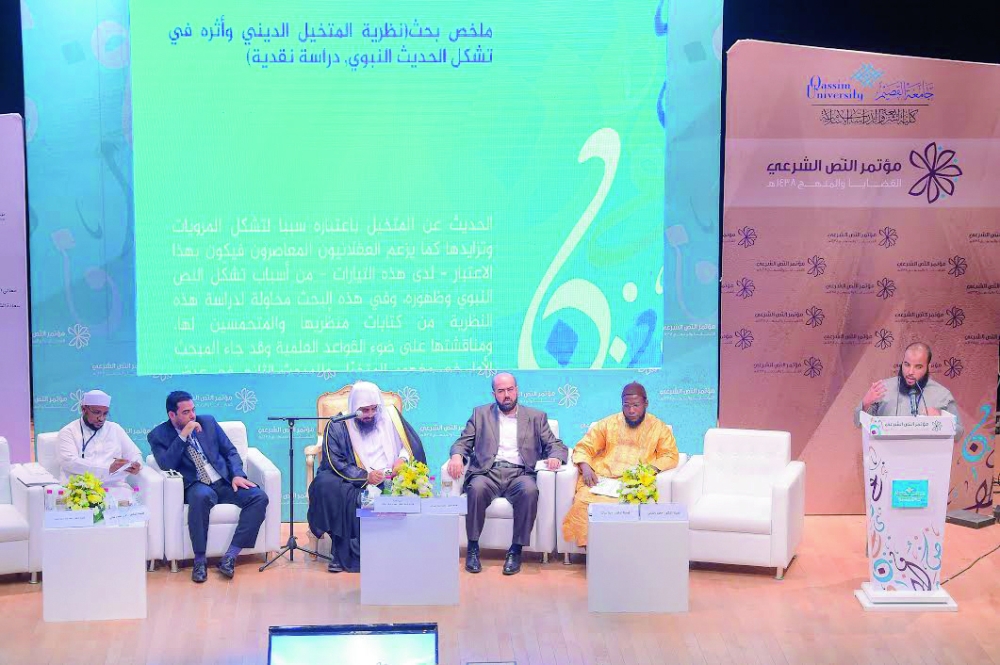 من جلسات مؤتمر النص الشرعي بجامعة القصيم. (عكاظ)