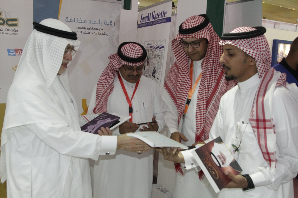 خوجة يزور جناح عكاظ .. ويشيد بشراكتها الثقافية
