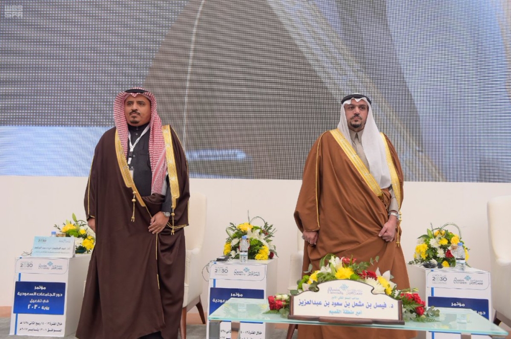 جاء ذلك خلال افتتاح سمو أمير منطقة القصيم مؤتمر دور الجامعات السعودية في تفعيل رؤية 2030 الذي تنظمه جامعة القصيم ، بحضور عدد من أصحاب السمو الأمراء ، وأصحاب المعالي ، ومدراء الجامعات السعودية ، والمسؤولين بالمنطقة.