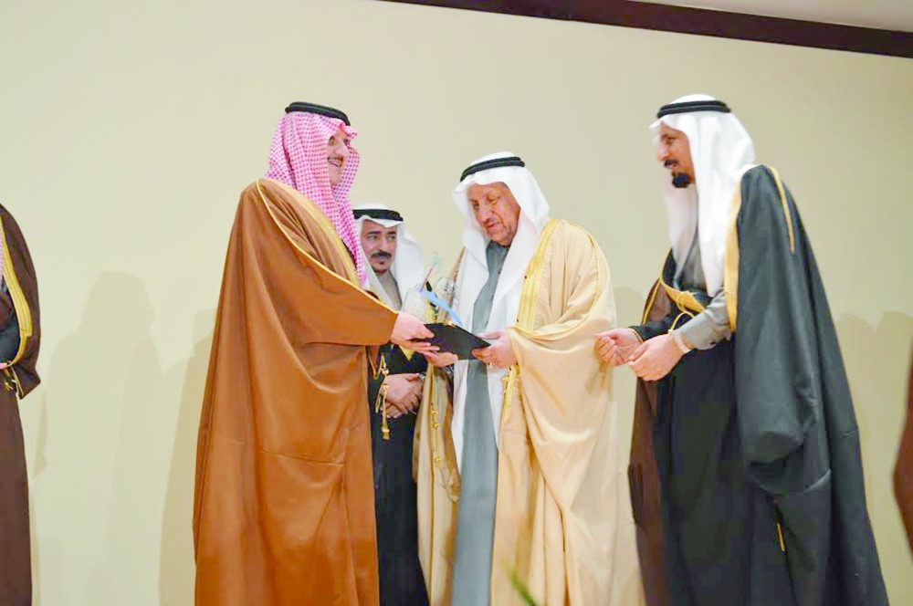 الأمير سعود بن نايف يكرم الجبر أمس في الأحساء. (تصوير: مفيد المهنا)