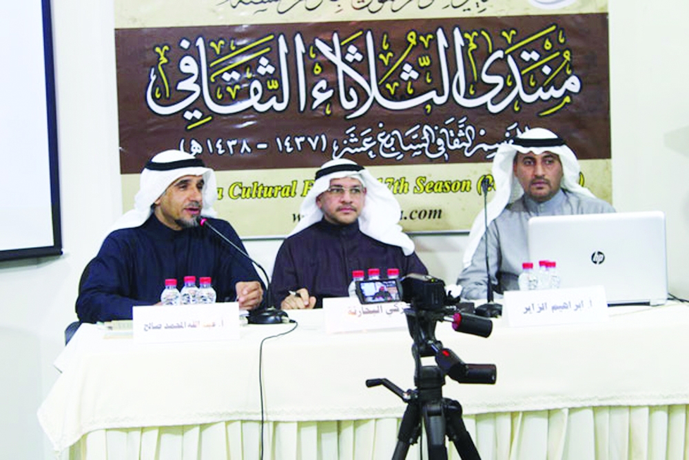 إبراهيم الزاير وعبدالله صالح متحدثين في منتدى القطيف أخيراً.
