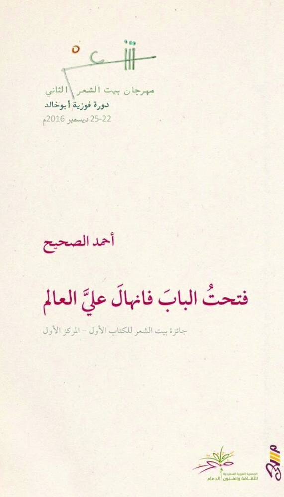 قبل أن يدلف القارئ إلى نصوص «فتحتُ البابَ فانهالَ عليَّ العالم» (جمعية الثقافة والفنون بالدمام - ٢٠١٧، توزيع: دار مسعى) ينصب أحمد الصحيح أمام - هذا القارئ - تقديما شعريّا بمثابة «مدخل:» يؤسّس عليه حروفه في عالم الكتابة. تلك الرافعة التي تعلن هويّته كائنا شعريّا يتموضع في مهبّ التجاذبات تأخذه إليها أو تدفعه عنها بصفته فردا له تجربته الوجودية أو باعتبار هذا الفرد جزءا من كلٍّ إنسانيٍّ؛ مرجعا يحمل الصدى بنبرته الجماعيّة. الخلاصة. البيان. التقطير. الشهادة المختزلة والشاخصة التي بقدر ما هي تشير وتنبّه فإنّها تعلن عن دم الشاعر ومسراه في جسد القول؛ رغائبَ وأمنياتٍ ومآلاتٍ وبذوراً متروكة لرياح تأتي أو ربما أتت بغير ما عُقِدَ عليها، ليبقى الكدح هو السمة الغالبة واللازمة بين فردوسين يقعان، أبداً، في الحسرة والتشهّي.. في استعادة وتركيب يبلغ فيهما الكدح غايةَ أنفاسه: (كان قمحا آمنا في الحقول/ كان نسيما باردا يلفح أناسا ينتظرون/ كان دما، وخرائطَ يحملها الغرباء في الطريق/ هذا الذي تشرّدَ تماما/ وصار كلامي).. (.../ لكنّ الأفق لم يحتشد في يدي/ هذه نافذتي مأخوذةٌ بك أيّها الخارج/ هاتِ آلامَكَ وادخلْ).