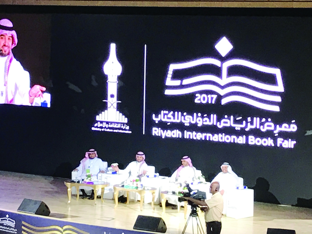 ندوة نجوم مواقع التواصل الاجتماعي في «كتاب الرياض» أمس الأول.