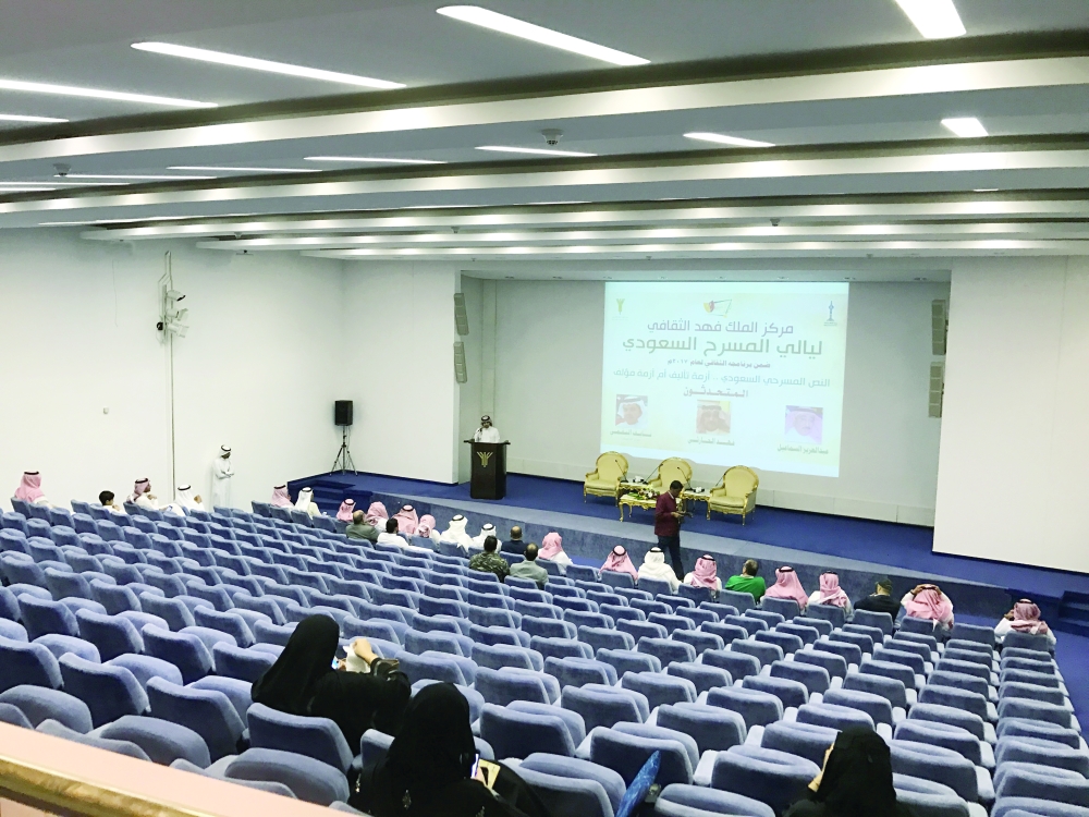 انطلاق الجلسات الأولى لليالي المسرح في مركز الملك فهد الثقافي في الرياض أمس الأول.