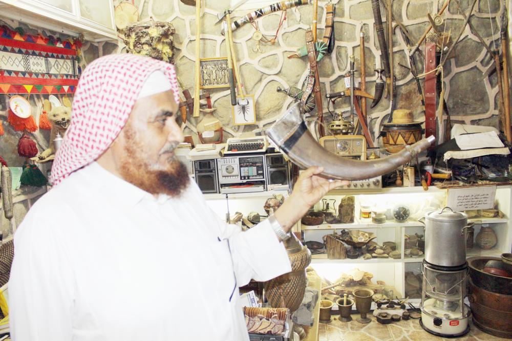 الدغريري مستعرضا محتويات متحفه. (عكاظ)