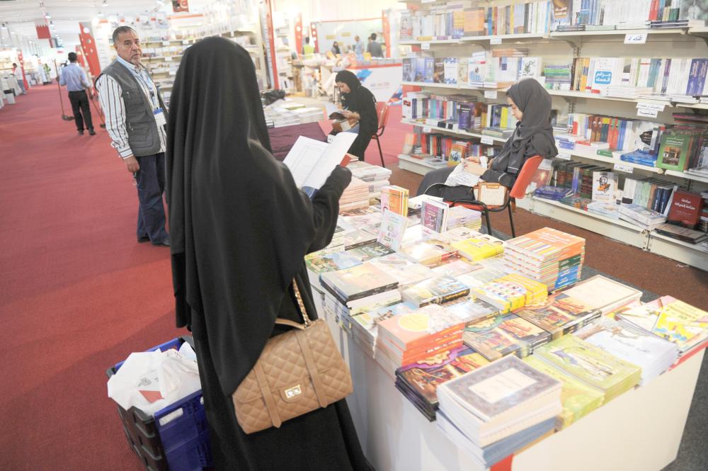 طالبة جامعية تتصفح كتابا في المعرض. (عكاظ)