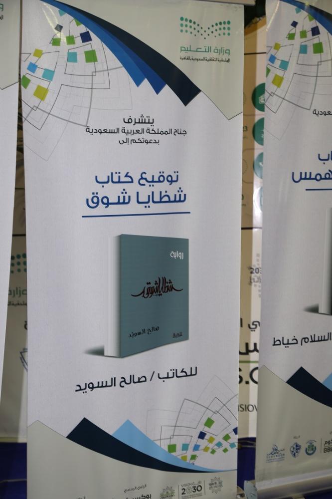 استضاف الصالون الثقافي للجناح السعودي المشارك بمعرض القاهرة الدولي للكتاب في دورته الـ49، حفلة توقيع كتب لثلاثة من الأدباء والكتاب السعوديين، هم الكاتبة حنان أبوحيمد، والشاعر والروائي صالح السويد، والشاعر نبيل عبدالسلام خياط، بحضور عدد من الزوار.