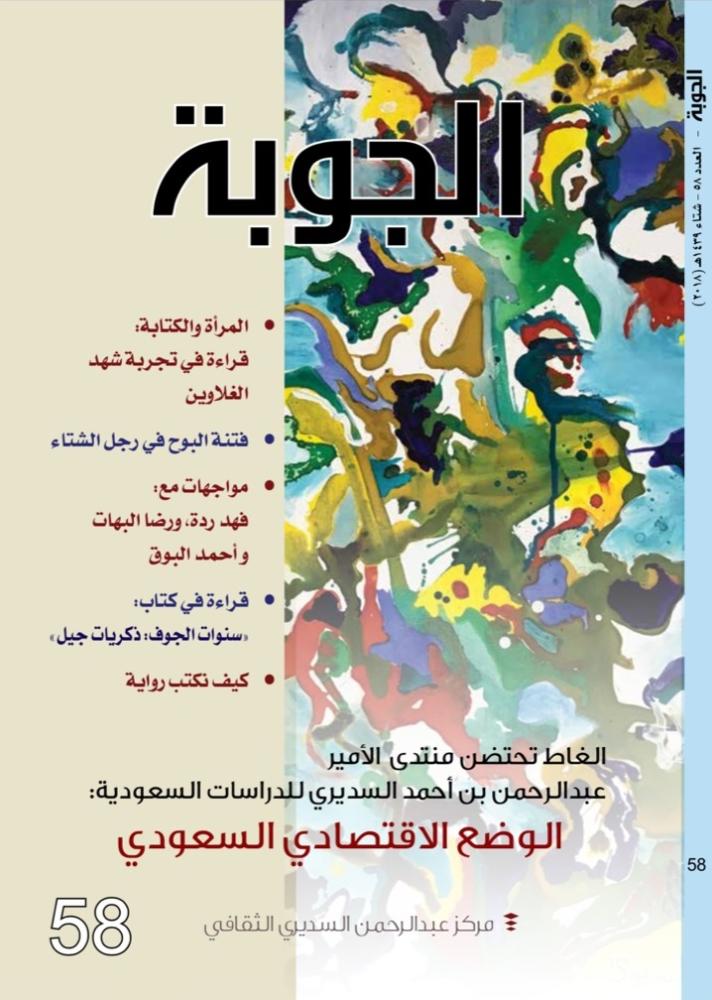 أما لوحة الغلاف فكانت للفنانة سارة البديوي من الجوف.