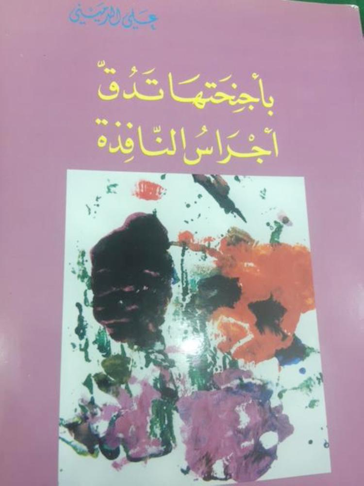 في مجموعة الشاعر علي الدميني (بأجنحتها تدق أجراس النافذة) أول ما يستوقف مقتني المجموعة صورة الغلاف المعبرة عن مدرسة فنية تنوس بين التجريدية والسريالية ما يحفّز على تأويل الدلالات واستنطاق العمل بأكثر من فهم، ليكشف في الصفحات التالية أن رسمة الغلاف من إبداع سوسن علي الدميني، ويأتي إهداء العمل من أبيها لها لاحقاً ليعزز الإيحاء الأولي للمجموعة من عنوانها الذي هو عتبة أولى إلى لوحة الغلاف إلى الإهداء.