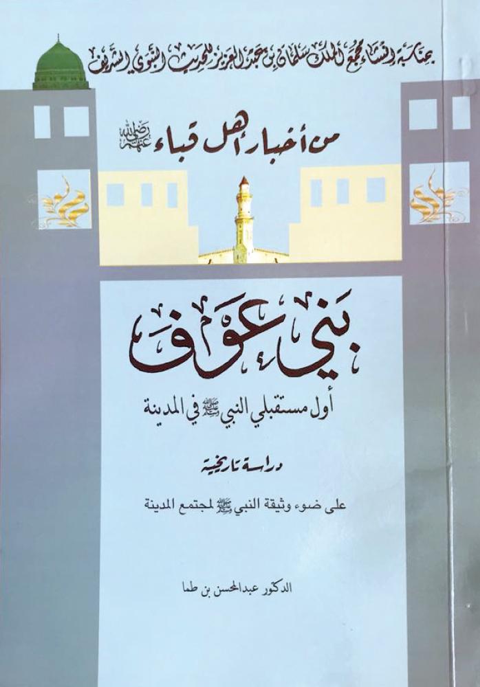 صدر للباحث الدكتور عبدالمحسن بن طما الحربي كتاب بعنوان «أهل قباء بني عوف رضي الله عنهم» دراسة تاريخية على ضوء وثيقة النبي صلى الله عليه وسلم لمجتمع المدينة. وبدأ الكتاب بتمهيد عن أشهر الكيانات المؤثرة في أمن طريق القوافل بين مكة والمدينة، ثم فصل في شرح موجه لوثيقة المدينة، كما بين الباحث تحركات وأخبار كيانات وثيقة المدينة في الأودية والواحات المحيطة بالمدينة، مثل الصفراء والفرع، وما حولها منذ القرن الأول حتى القرن السادس من خلال المصادر والنقوش الصخرية رابطا علاقتهم بأبناء عمومتهم بني عمرو وبني سالم. وتضمن الكتاب ردودا تاريخية توضح بأن الأوس والخزرج (الأنصار) هم الجمع الغفير في الحجاز والأندلس، موضحا حصون بني عوف أهل قباء ومنازلهم ومساجدهم وأشهرها قباء، وبين دورهم في استقبالهم للنبي صلى الله عليه وسلم، وبعض مواقفهم في العهد النبوي والعهد الراشدي والأموي والعباسي. وختم الباحث كتابه بمقتطفات من أدب وتاريخ بني عوف أهل قباء وجنوب المدينة.