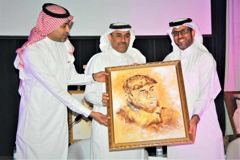 تكريم الشاعر علي الحازمي من مدير الجمعية علي زعلة. (عكاظ)