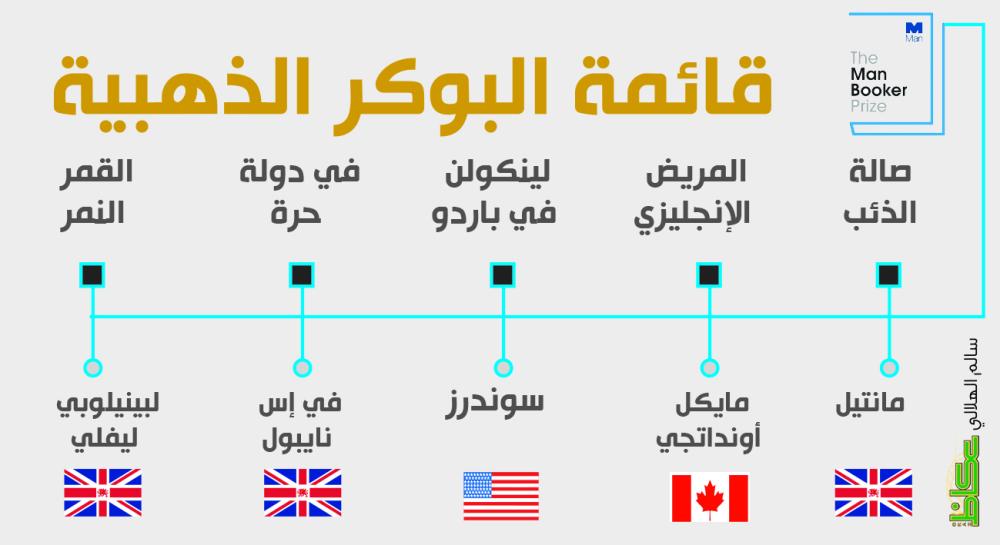 وتأتي رواية مانتيل«صالة الذئب»، ورواية أونداتجي متعددة الطبقات «المريض الإنجليزي»، وروراية سوندرز التي تتناول حقبة الحرب الأهلية الأمريكية «لينكولن في باردو»