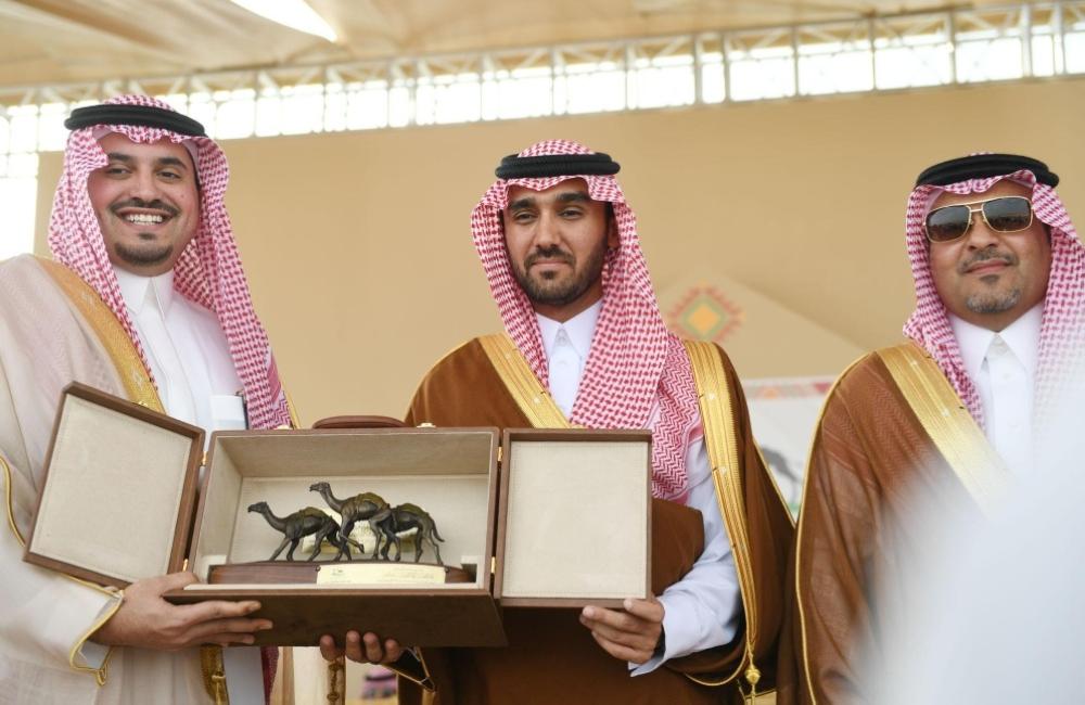 كرم نائب رئيس مجلس إدارة الهيئة العامة للرياضة نائب رئيس اللجنة الأوليمبية العربية السعودية الأمير عبدالعزيز بن تركي الفيصل، الفائزين في ماراثون سوق عكاظ التراثي الأول لملاك الهجن، الذي انطلقت فعاليته اليوم (الخميس) على ميدان الهجن بمحافظة الطائف للهجن، ضمن فعاليات الاتحاد السعودي للهجن.