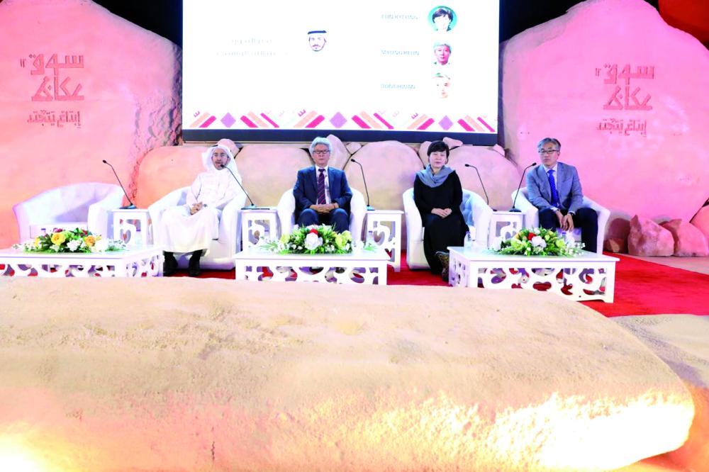 المشاركون في ندوة «اللغة العربية في كوريا»، ويظهر مدير الندوة د. عبدالله الوشمي. (عكاظ)