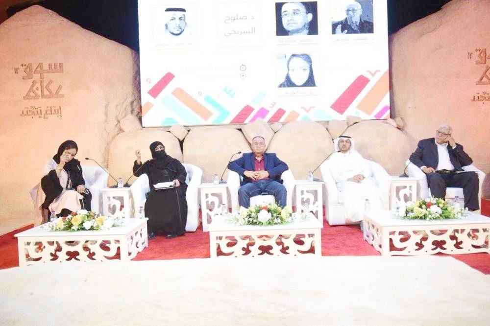 المشاركون في ندوة الأدب الرقمي ورقمنة اللغة. (عكاظ)