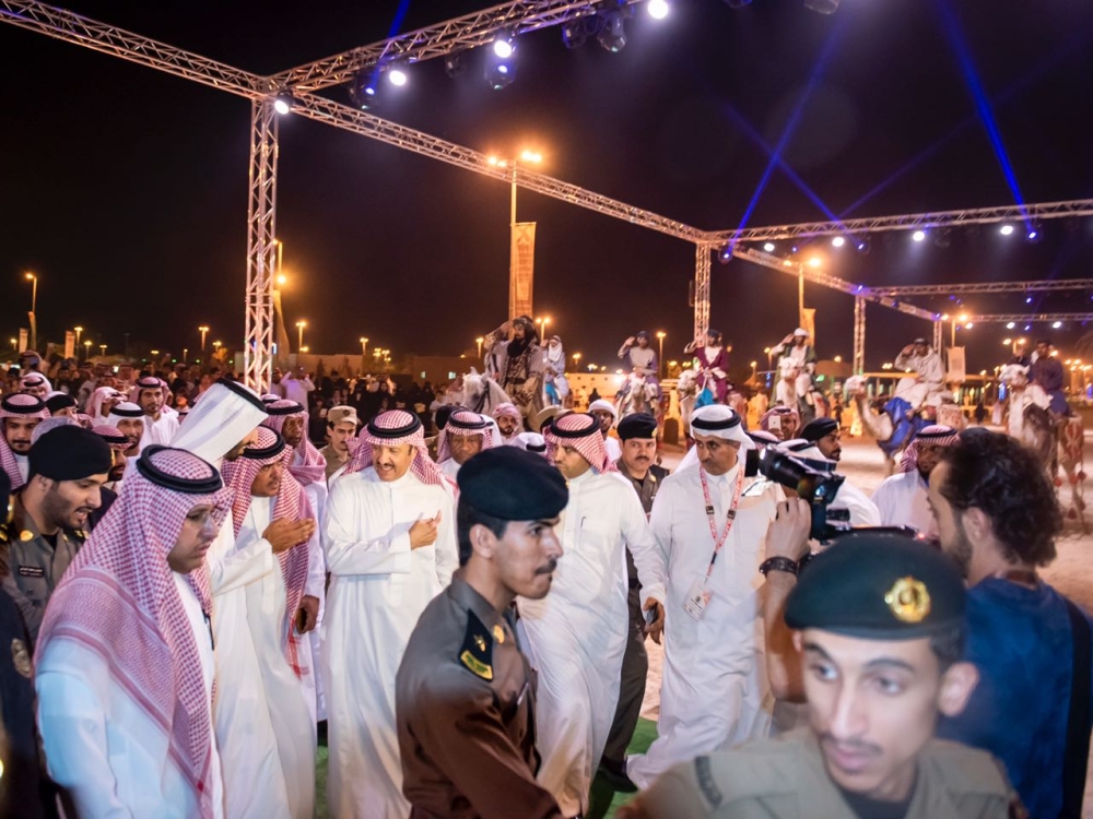 تجول رئيس الهيئة العامة للتراث الوطني الأمير سلطان بن سلمان بن عبدالعزيز، وسفير الإمارات الشيخ شخبوط آل نهيان، أمس (الأربعاء)، في أروقة مهرجان «سوق عكاظ»، وشاهدا العروض الحية لمهارات وفنون الفروسية في «جادة عكاظ» المقدمة من مركز الجعيد للفروسية بمشاركة ٢٣ فارساً.