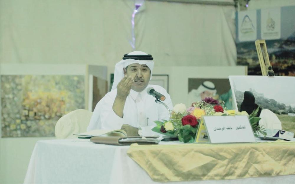 نايف الرشدان في محاضرته بالمركز الحضاري بالنماص. (عكاظ)