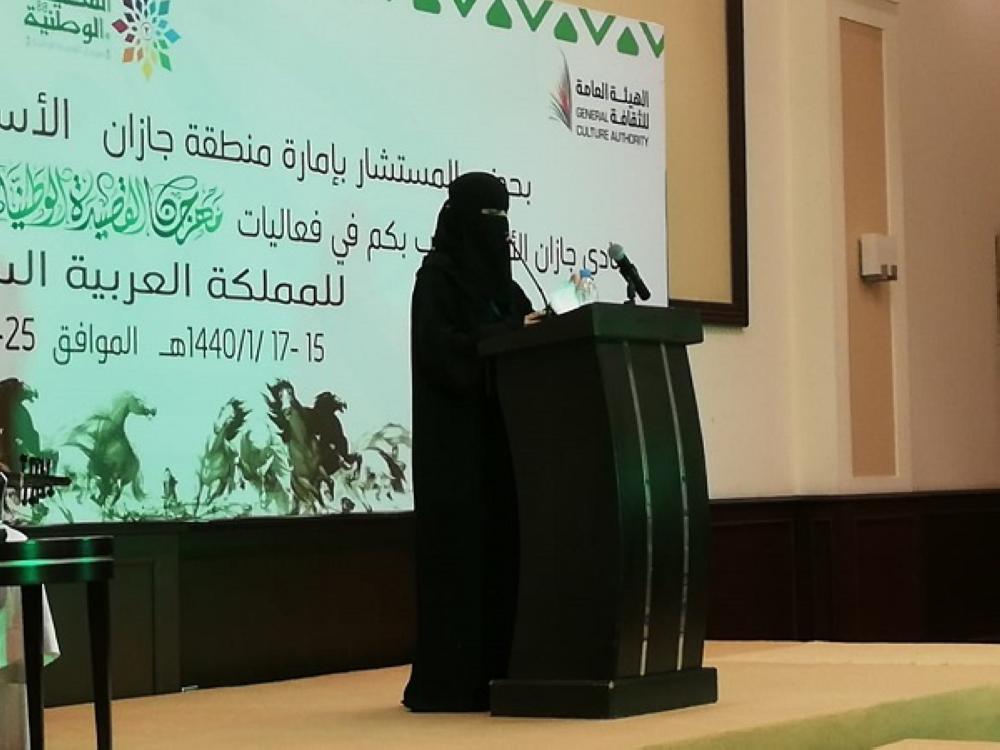 أحيا أكثر من 30 شاعراً وشاعرة الليلة الثانية من مهرجان القصيدة الوطنية بأدبي جازان بمناسبة يوم الوطن الـ 88، حيث بدأ الشاعر ملهي عقدي بقصيدة وطنية.