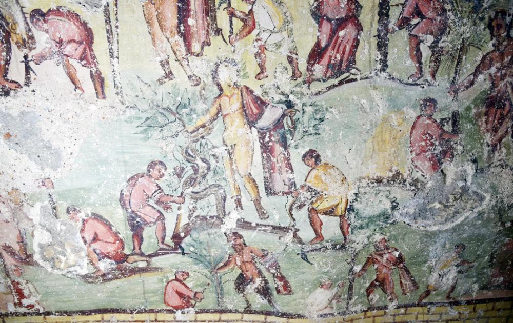 إحدى اللوحات الجدارية في مقبرة رومانية بالأردن.