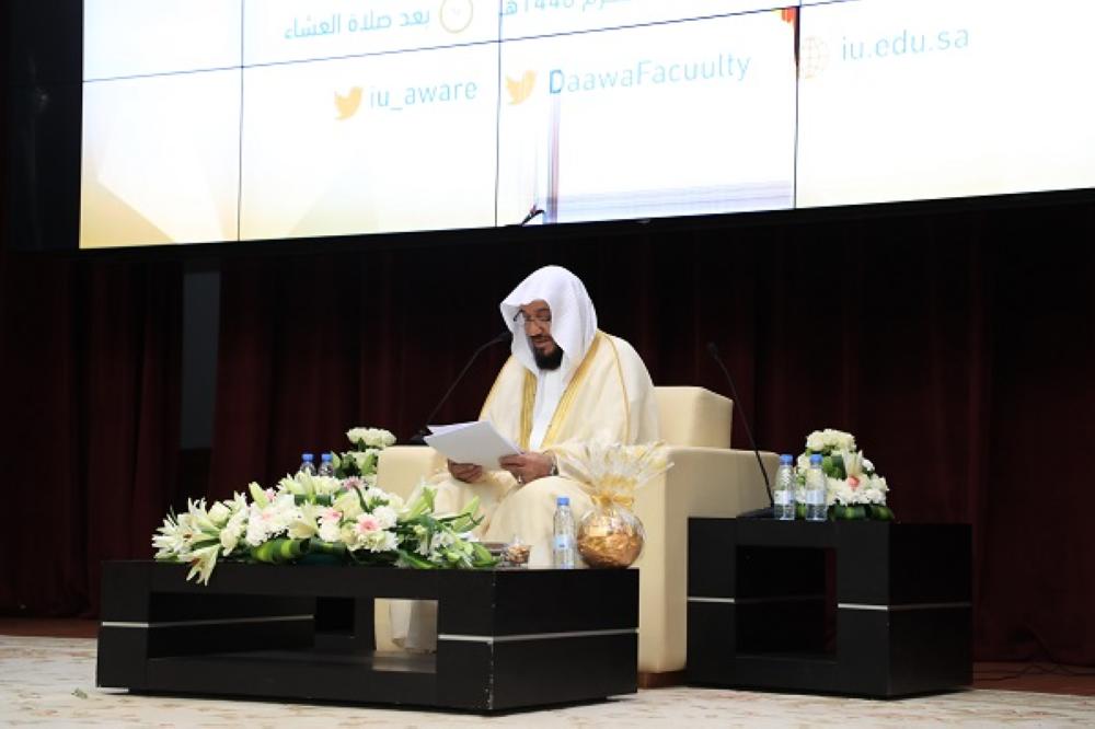 جاء ذلك خلال رعايته المحاضرة التي نظمتها كلية الدعوة وأصول الدين بالجامعة الإسلامية بالمدينة المنورة بالتعاون مع وحدة التوعية الفكرية مساء أمس الثلاثاء في قاعة الملك سعود، بعنوان «مظاهر الانحراف عند الإخوان المسلمين»، ألقاها الدكتور سعود بن عبدالعزيز الخلف رئيس الجمعية العلمية السعودية لعلوم العقيدة والأديان والفرق والمذاهب، بحضور عدد من مسؤولي الجامعة وطلابها الذين يمثلون أكثر من 170 جنسية.