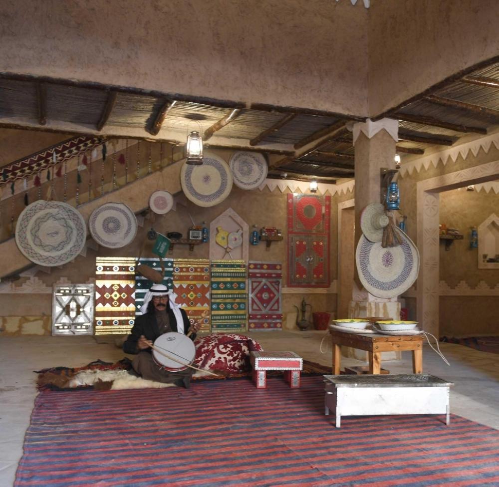 فيما كانت الإنطلاقة الأولى لفعاليات القرية التراثية يفوح من بوابتها الرئيسية عبق الماضي بكل جمالياته، كما تحتضن بقصورها وأجنحتها التنوع في إرث الإنسان والمكان الممتد على محافظاتها الصحراوية والساحلية، حيث تحتضن القرية البيت الصحراوي والبيت الساحلي والحرف اليدوية وساحة العروض والمسرح, كما يتربع وسط القرية نموذجاً لبئر" هداج تيماء الذي يعتبر أشهر بئر في الجزيرة العربية.