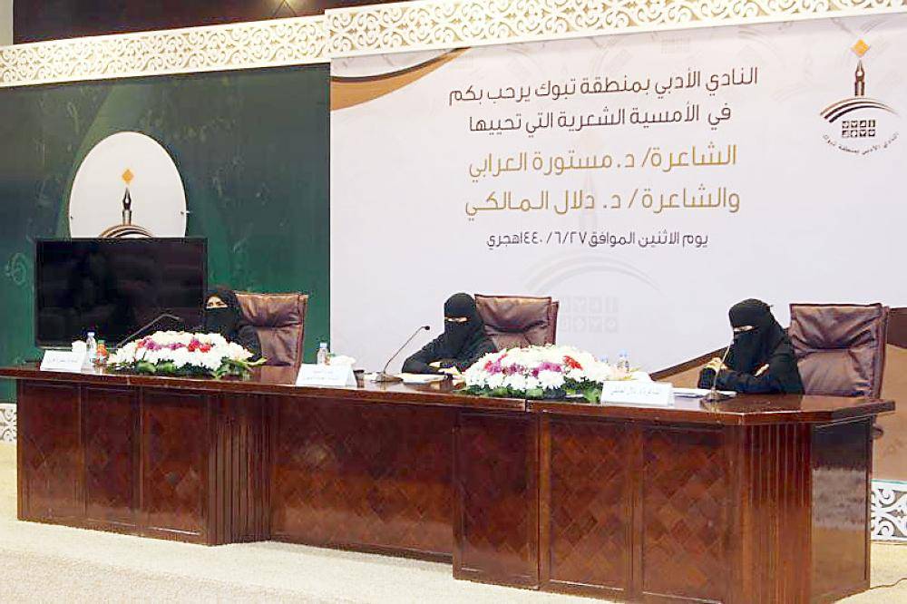 أقيمت على صالة محمد عرفة الثقافية بنادي تبوك الأدبي أمسية شعرية حالمة أحيتها الشاعرتان مستورة العرابي ودلال المالكي وقدمتها حسناء الشهري، إذ امتزجت فيها الكلمات الجميلة بالحس الشعري والأداء المميز للشاعرتين وسط حضور عدد من المثقفين والمثقفات.