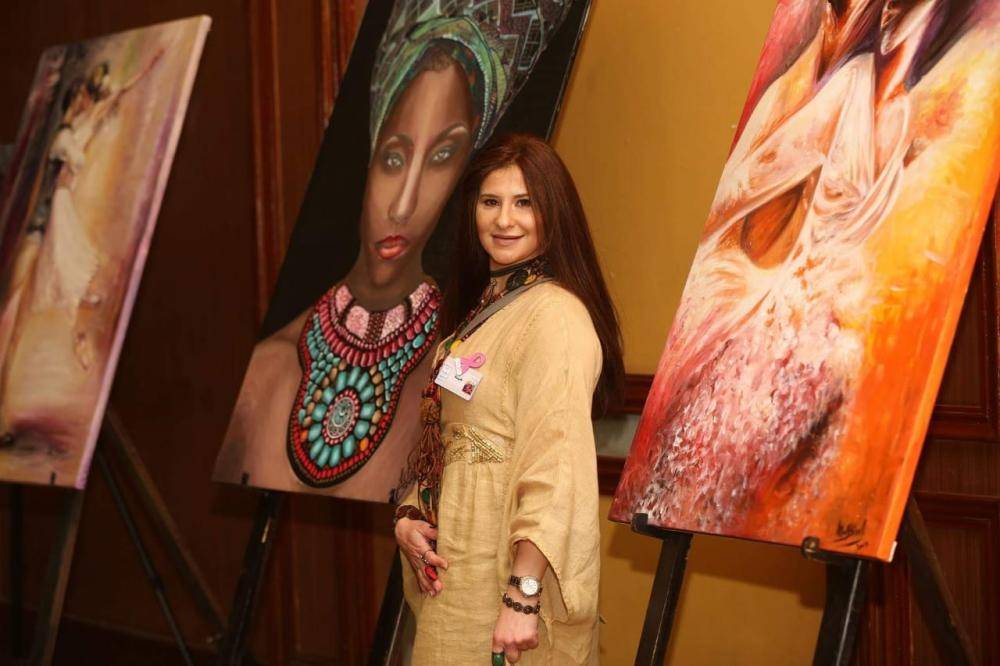 وعرضت الفنانات التشكيليات العديد من الأعمال الفنية المُختلفة، التي تتحدث عن المرأة العربية من ناحية الشكل والزى، إلى جانب عدد من اللوحات الفنية التي تحكي بعض مشكلات المرأة في مواجهة مرض السرطان، والتي جمعت بين الأصالة والتجديد.