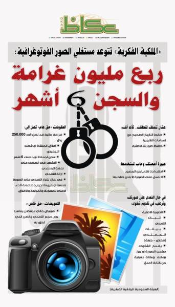 توعدت الهيئة السعودية للملكية الفكرية منتهكي الصور الفوتوغرافية الخاصة بغرامات مالية تصل إلى 250 ألف ريال والسجن مدة لا تزيد على 6 أشهر. وحذرت الهيئة في بيان صحفي، أمس (الخميس)، من استغلال أو تعديل الصور الفوتوغرافية دون إذن كتابي من صاحب الحق، وذلك وفقاً لأحكام نظام حماية حقوق المؤلف، معتبرة الصور من المصنفات الأصلية المحمية بموجب أحكام النظام.