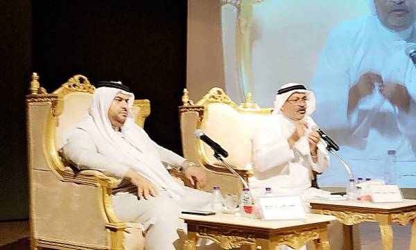 الغامدي متحدثاً وإلى جواره مدير الجلسة آل مريع.