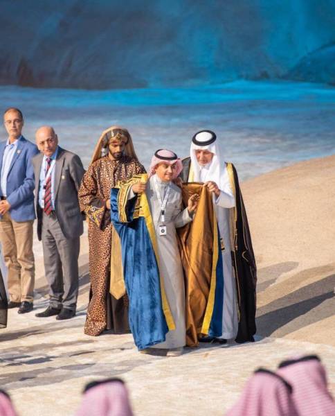 نيابة عن خادم الحرمين.. الفيصل يوشح يعقوب بردة شاعر عكاظ