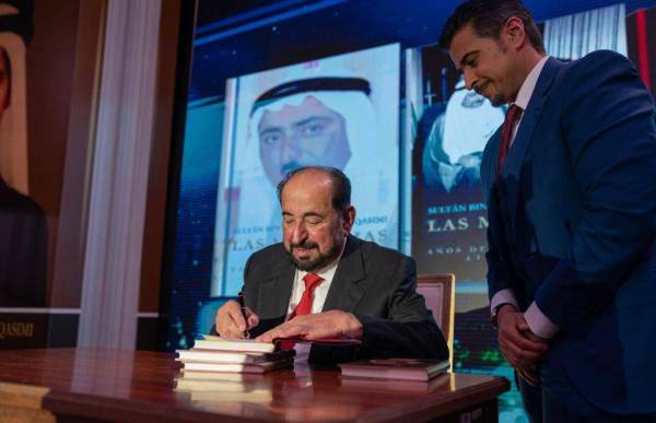 ووقع حاكم الشارقة عدداً من نسخ مؤلفاته المترجمة إلى الإسبانية، ضمت كتاب «سرد الذات»، وكتاب «حديث الذاكرة» بأجزائه الثلاثة، وكتاب «إني أدين»، وكتاب «بيان المؤرخين الأماجد في براءة ابن ماجد»، و«رواية الشيخ الأبيض»، و«رواية الأمير الثائر»، و«رواية الحقد الدفين».