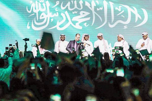 عدد من عشاق الموسيقى السعوديين في أول معهد لتعليم الموسيقى في الرياض.