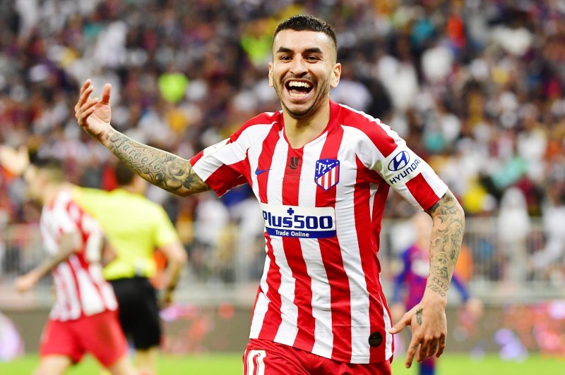 Atletico Madrid's Argentine forward Angel Correa celebrates his goal during the Spanish Super Cup semi final between Barcelona and Atletico Madrid on January 9, 2020, at the King Abdullah Sport City in the Saudi Arabian port city of Jeddah. The winner will face Real Madrid in the final on January 12. / AFP / Giuseppe CACACE