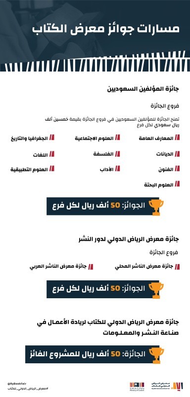 يُذكر أن وزارة الثقافة تهدف من جوائز معرض الكتاب إلى دعم صناعة النشر في المملكة، وتحفيز المؤلف السعودي على تقديم منتج ثقافي عالي الجودة في مختلف التخصصات المعرفية، ضمن حزمة من الخطوات النوعيّة التي ستقدمها الوزارة للدورة القادمة من معرض الرياض الدولي للكتاب التي ستقام في واجهة الرياض خلال الفترة من 2 إلى 11 أبريل 2020.