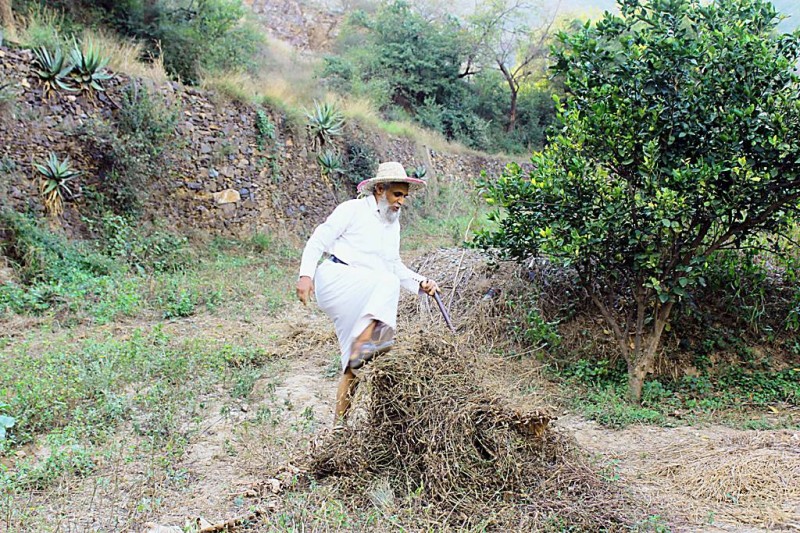 القاص إبراهيم شحبي في مزرعته فلاحاً.