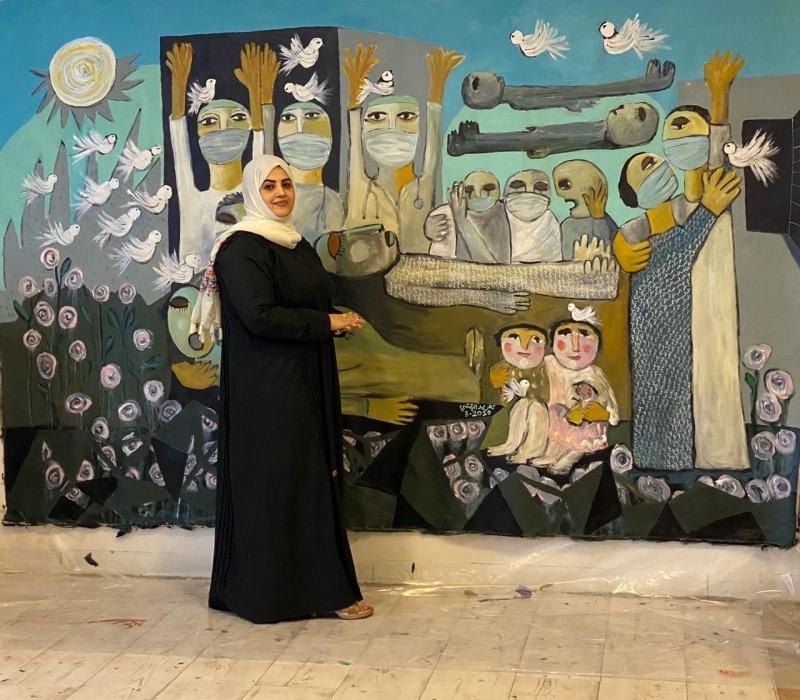 تماهى إبداع الفن التشكيلي مع حس المسؤولية الإنسانية، في جهود مجموعة من الفنانات اللائي اضطلعن بدورهن في مواجهة جائحة كورونا، واستشعرن مسؤوليتهن الاجتماعية، فنثرن ألوانهن على مساحات لوحاتهن، وجسدن خلالها مشاعر الدهشة والإنسانية والألم، وأطلقن عددا من الرسائل باللون والفرشاة، إذ رسم بعضهن تفاصيل الهلع والخوف والترقب بألوان توحي بالألم والحزن، بينما استعانت أخريات بألوان البهجة والأمل، في دلالة على قدرة العالم على هزيمة الوباء، وانفراج الغمة والعودة للحياة الطبيعة الهانئة، لا سيما في السعودية، وسط ما تقدمه الدولة من جهود وقائية واحترازية أبهرت العالم أجمع.