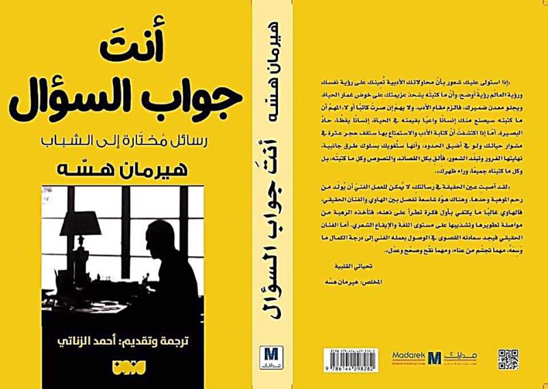 تصدر عن دار مدرك قريباً الترجمة العربية لكتاب «أنت جواب السؤال: رسائل مختارة إلى الشباب»، للأديب الألماني الحائز على جائزة نوبل هيرمان هسه، ترجمة وتقديم أحمد الزناتي.
