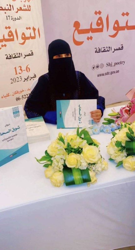 وقعت الشاعرة والكاتبة السعودية فاطمة الشمراني «عوسج» ديوانها «شوق السحاب»، خلال تواجدها في مهرجان الشارقة للشعر النبطي.