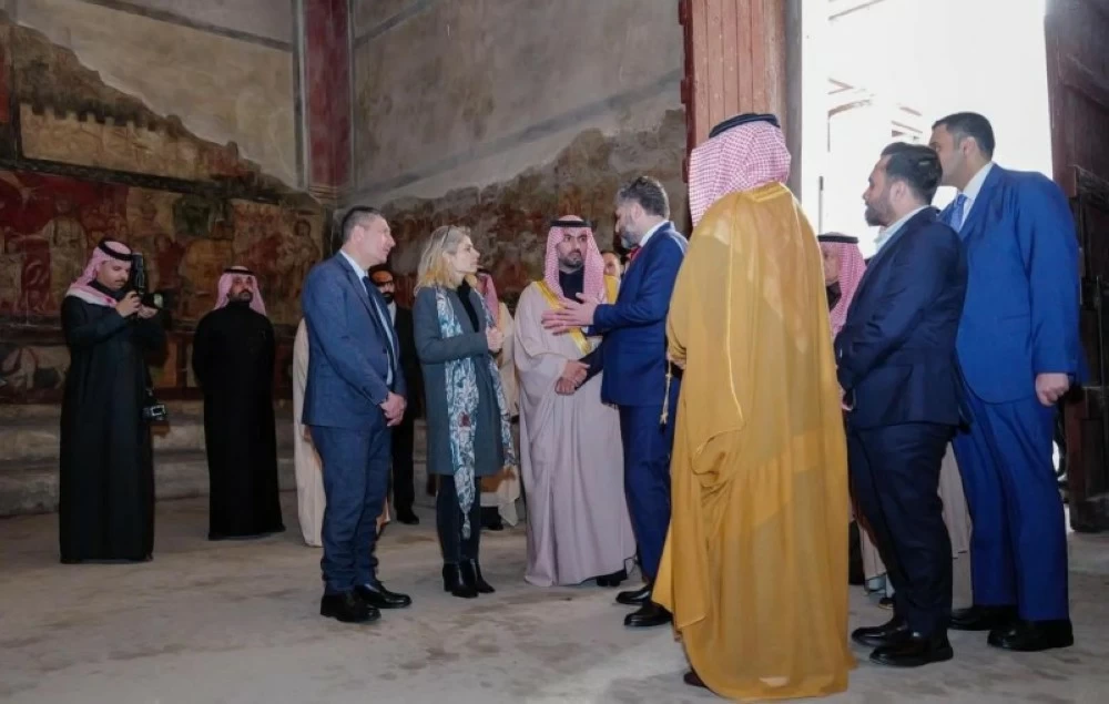 The Minister of Culture and his Syrian counterpart toured the museum, which houses many rare artifacts distributed across wings that cover prehistoric times, ancient Syrian antiquities, classical, Islamic, traditional arts, and modern art. Among the most notable of these wings is the Arab Islamic section, which includes exhibits from the Umayyad period, including the Qasr al-Hayr al-Gharbi.