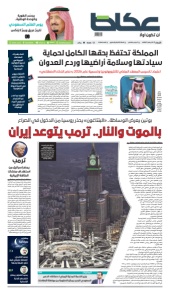ً أن تكون أولاً ريا ن صفحة 12 21428 العدد الأربعاء هـ 1447 رمضان 22 السنة الثامنة والستون م 2026 مارس 11 OKAZ_online OKAZNEWS OKAZ_sa OKAZNewspaper OKAZ1 بـ«عام الذكاء الاصطناعي» 2026 اعتماد تأسيسالمعهد الملكيللأنثروبولوجيا وتسمية عام مجلس الوزراء: المملكة تحتفظ بحقها الكامل لحماية سيادتها وسلامة أراضيها وردع العدوان أكّّـــد مجلس الــــوزراء بـرئـاسـة ولــي العهد رئـيـس مجلس الـــوزراء الأمــيــر مـحـمـد بــن سـلـمـان بــن عـبـدالـعـزيـز عـلـى احـتـفـاظ المملكة بحقها الـكـامـل فــي اتّــخــاذ الإجــــــراء ات الـتـي تكفل حـمـايـة أمنها وســيــادتــهــا وسلامـــــة أراضــيــهــا وردع الــــعــــدوان، مـشـيـداً فـــي هـذا الإطار بقدرات الدفاعات الجوية السعودية في اعتراض وتدمير صـواريـخ ومـسـيّـرات معادية حـاولـت اسـتـهـداف مـواقـع ومنشآت داخل الوطن. وأدان المـــجـــلـــس- فـــي جـلـسـتـه أمــــس بـــالاتـــصـــال المـــرئـــي - بــشــدّة الاعــتــداء ات الإيرانية الآثمة على المملكة ودول مجلس التعاون وعـدد من الــدول العربية والإسلامـيـة والصديقة، والإصـــرار على تـهـديـد الأمـــن والاســتــقــرار والانــتــهــاك الـسـافـر للمواثيق الـدولـيـة والقانون الدولي؛ بمهاجمة الأعيان المدنية والمطارات والمنشآت النفطية. واستعرض مجلس الـــوزراء الــدور المتواصل للمملكة النابع من نـهـجـهـا الـــداعـــم لـلـتـضـامـن والـــتـــعـــاون والـتـنـسـيـق مـــع محيطها الخليجي والعربي تجاه التحديات الإقليمية الراهنة، مقدّراً في هذا السياق ما اشتمل عليه الاجتماع الوزاري المشترك بين مجلس التعاون والاتحاد الأوروبـي، والاجتماع الـوزاري لمجلس جامعة الدول العربية من مضامين أدانت الاعتداء ات الإيرانية الغاشمة. وفـــي الــشــأن المـحـلـي عـــدّ مجلس الـــــوزراء الاحـتـفـاء بـيـوم (الـعَـلَـم) تأ يداً على الاعتزاز بدلالته ورمزيته في تاريخ الدولة السعودية تأسيساً وتوحيداً وبناءً، وبمضامينه المجسّدة للثوابت الراسخة والهوية الوطنية في المملكة. وفي شأن آخر قرر المجلس اعتماد تأسيس المعهد الملكي للأنثروبولوجيا، ما وافــق على تنظيم مكتبة المـلـك فهد الوطنية وعـلـى «وثيقة مسقط لقواعد حماية الطفل خلال مرحلة التحقيق بدول مجلس التعاون لدول الخليج العربية» بصفتها الإلزامية، ما وافق المجلس على تسمية عام م) بـ (عام الذ اء الاصطناعي). 2026( ونوّه المجلس بما صدر عن الاجتماع السنوي لأمراء المناطق من تـوصـيـات، ما تطرق إلــى مـا توليه الـدولـة مـن حــرص واهتمام بتعزيز منظومة الـعـمـل الـخـيـري، وتـرسـيـخ قـيـم الــبــذل وتقديم نموذج يُحتذى به في مجالات العطاء والتكافل. مشهد جويللمسجد الحراموالكعبة المشرّفة، حيث يكتظ صحن المطافوالساحات بالمصلين والمعتمرين، فيأجواء إيمانية ليلة الثانيوالعشرينمن رمضان. (واس) 04 المحليات بوتين يعرض الوساطة.. «البنتاغون» يحذر روسيا من الدخول في الصراع بالموتوالنار.. ترمب يتوعد إيران @okaz_online ) «عكاظ» (جدة في اليوم الحادي عشر للحرب الأمريكية الإسرائيلية مع إيران، واصلت طهران، أمس (الثلاثاء)، اعتداء اتها الــســافــرة عـلـى دول الـخـلـيــج. وأعـــلـــن الـــدفـــاع المـدنـي السعودي، سقوط مسيّرة على أحـد المواقع السكنية بــالــزلــفــي مـــا أحـــــدث أضـــــــراراً مـــاديـــة مــــحــــدودة دون إصابات. وأفـادت وزارة الدفاع السعودية باعتراض وتــدمــيــر مــســيّــرة شـــرق مـحـافـظـة الـــخـــرج، واعـــتـــراض وتـدمـيـر صــــاروخ باليستي، ومــســيّــرتين فــي المنطقة مسيّرات 9 الشرقية. وتصدّت الدفاعات السعودية لـ في الربع الخالي متجهة إلى حقل شيبة. وهـــــــدّد الـــرئـــيـــس الأمـــريـــكـــي دونــــالــــد تــــرمــــب، إيــــــران، بـالمـوت والـنـار والغضب إذا أوقـفـت تدفق النفط من مضيق هرمز. و شف في مقابلة مع «فو س نيوز» (الإثــن