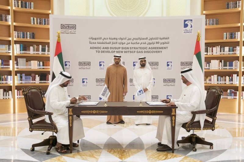 وتأتي الاتفاقية في أعقاب اكتشاف مخزون ضخم من موارد الغاز الطبيعي في منطقة مشتركة واقعة بين إمارتي أبوظبي ودبي وتغطي مساحة 5 آلاف كيلومتر مربع، ضمن أحد أكبر اكتشافات الغاز الطبيعي، ما يعزز موقع دولة الإمارات العربية المتحدة بين الدول صاحبة أكبر مخزونات من الغاز الطبيعي على مستوى العالم.