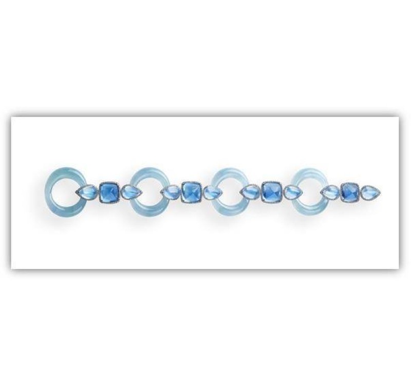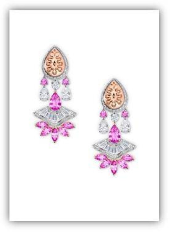 وهناك عقد مذهل من الروبليت والسافير الزهري يترك بصمة مميزة على إطلالة من ترتديه، ويبدو كياقة «كلودين» المستديرة. وبفضل زخارف تبدو كشريط دانتيل من الأحجار الكريمة بلون زهري ولمسات نهائية متناهية الدقة، تقدم هذه التحفة البديعة لمسة عصرية وجريئة على الموضة الكلاسيكية. وبالمثل، رصّع زوج من الأقراط بإجمالي 35 قيراطا من الألماس الكمثري القطع الذي زيّن دلايات طويلة ليعزز من فخامة الأقراط.