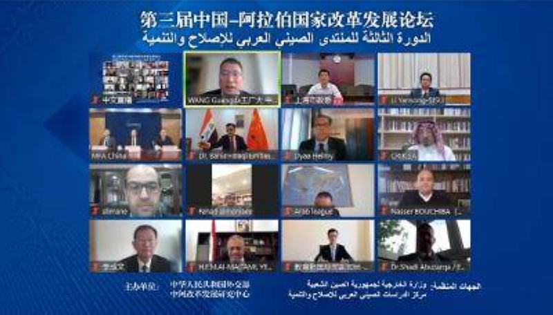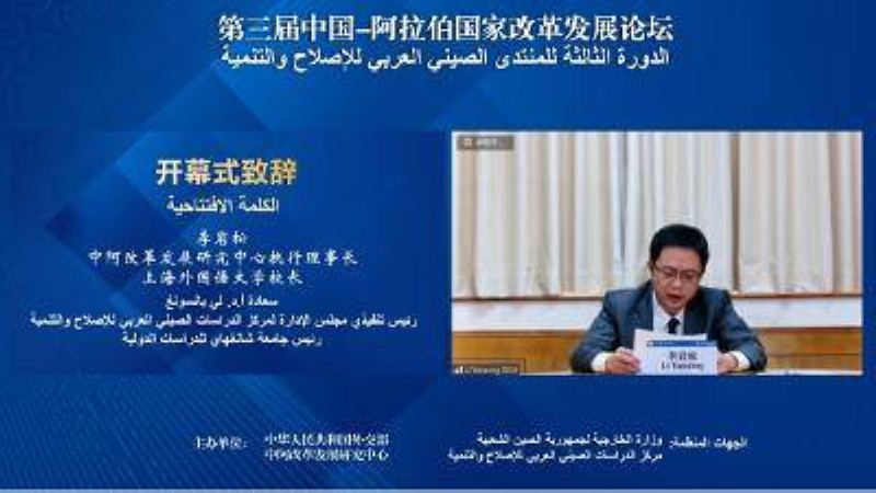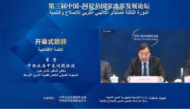 انطلقت أعمال الدورة الثالثة للمنتدى الصيني العربي للإصلاح والتنمية، أمس، في العاصمة (بكين)، عبر الاتصال المرئي، التي افتتحها سفير شؤون منتدى التعاون الصيني العربي السفير لي تشن، بحضور المبعوث الصيني الخاص للشرق الأوسط السفير تشاي جون، ومشاركة الأمين العام المساعد لجامعة الدول العربية السفير خليل الذوادي، والرئيس التنفيذي لمجلس إدارة مركز الدراسات الصيني العربي للإصلاح والتنمية رئيس جامعة شنغهاي للدراسات الدولية الدكتور لي يانسونغ، ورئيس دائرة تنمية المجتمع بالإمارات العربية المتحدة الدكتور مغير الخييلي، وعدد من المتحدثين الصينين والعرب.