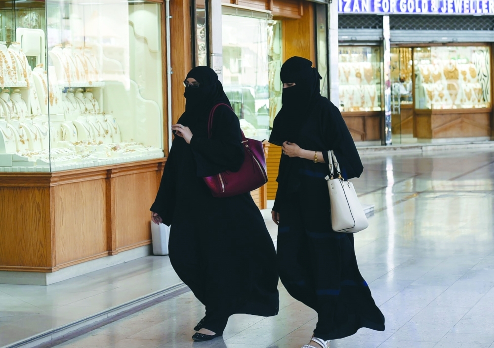 سيدتان سعوديتان تتسوقان في أحد المراكز التجارية في الرياض. (أ.ف.ب)