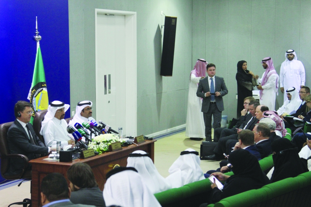 المؤتمر الصحفي لوزراء البترول في السعودية وقطر وروسيا.