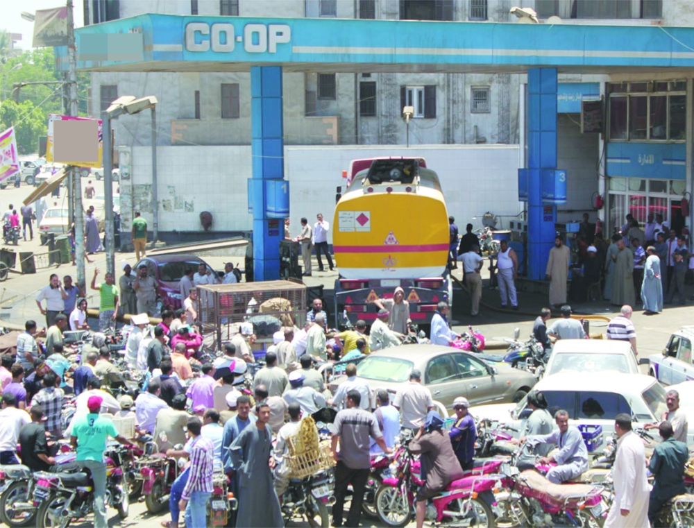 ازدحام على محطة وقود بصعيد مصر بعد قرارات رفع أسعار البنزين والسولار الأخيرة. (عكاظ)