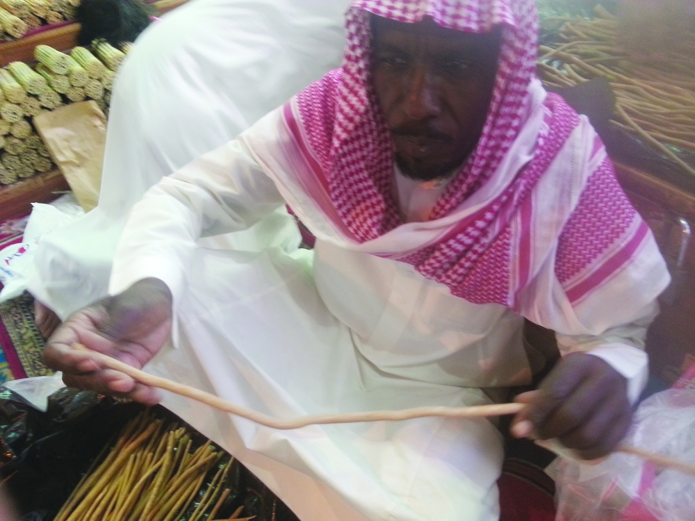 العبدلي يعرض «الحنش» أحد أكبر أنواع المساويك.