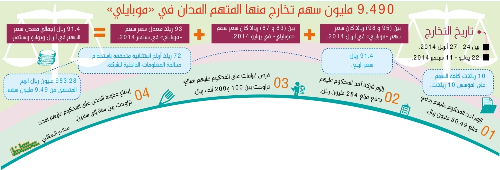 فيما يلي في أدناه الأسعار الفعلية كما في برنامج «تداول» لسهم شركة «موبايلي» في تواريخ التخارج وبيع أسهم المدانين كما حددتها لجنة الفصل وهي بين 22 و27 أبريل عام 2014، ومن 22 يوليو لغاية 11 سبتمبر من نفس العام 2014..