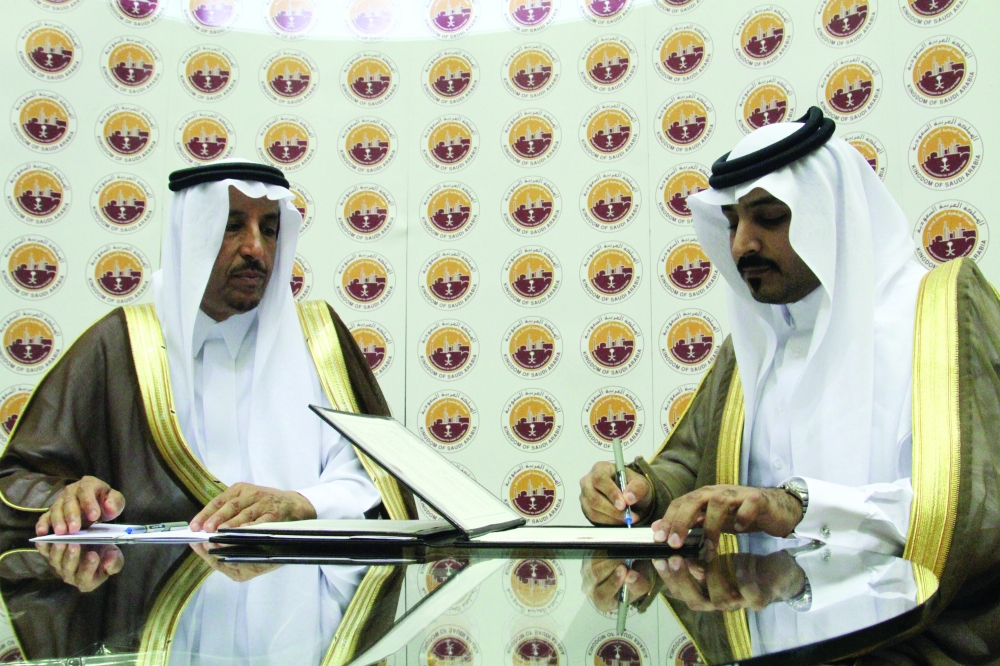 سعود بن ثنيان أثناء مراسم توقيع الاتفاقات. (تصوير: عبدالعزيز اليوسف)